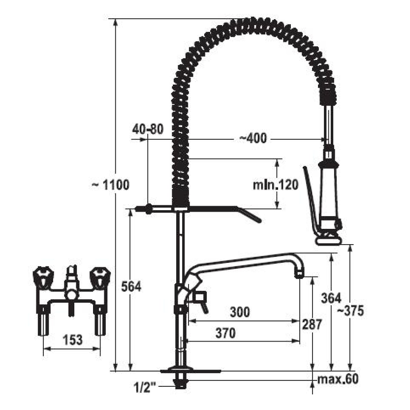 Sie kaufen hier bei uns im Onlineshop diese KWC-Küchenarmatur mit Geschirrwaschbrause als hochwertige und zuverlässige Spültischarmatur für Durchschubspülerzeilen oder Vorspülbecken bei Untertisch-Geschirrspülmaschinen.