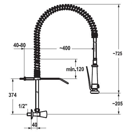Sie kaufen hier bei uns im Online Shop diese Gastronomie-Geschirrwaschbrause mit Eckventil als hochwertige und zuverlässige Spültischarmatur für reine Durchschubspülerzeilen mit Vorspülbecken.