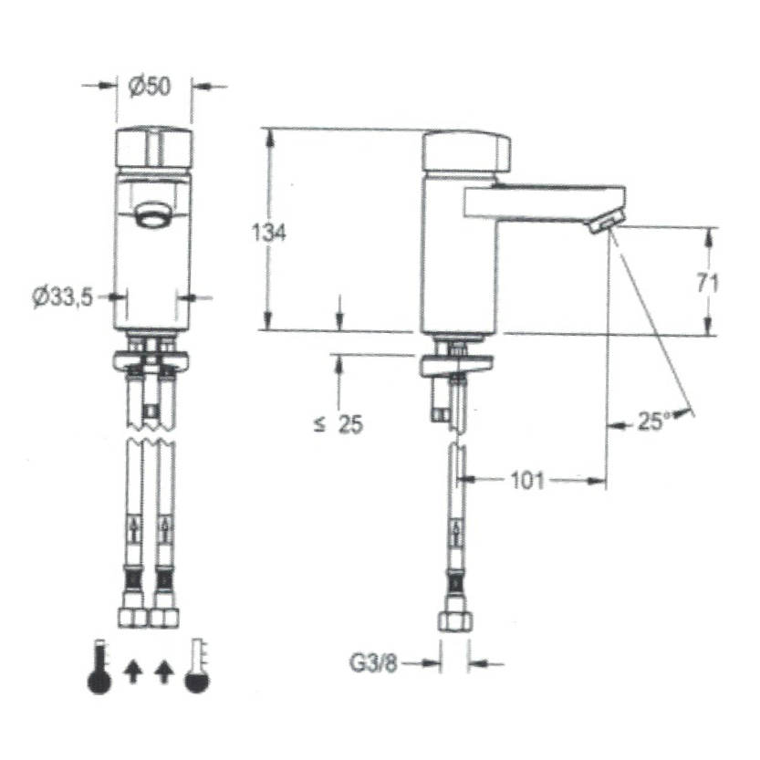- Hydraulische Waschtischarmatur für Hygienewaschbecken / Handwaschbecken in Gastronomieküchen und Gewerbebereichen