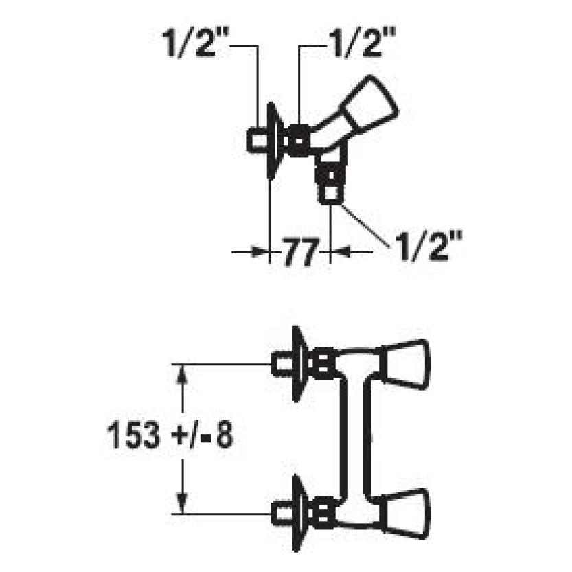 Abstand der Anschlußgewinde: 153 mm (+/- 8 mm über Exzenteranschlüsse)