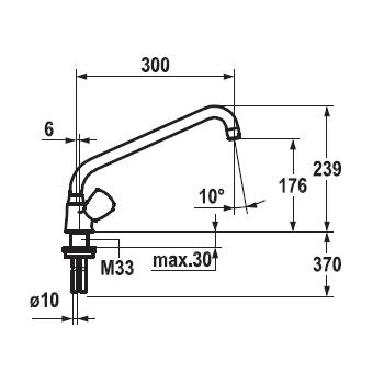 Radius des Auslaufs ab Mitte der Tischbohrung: 30 cm